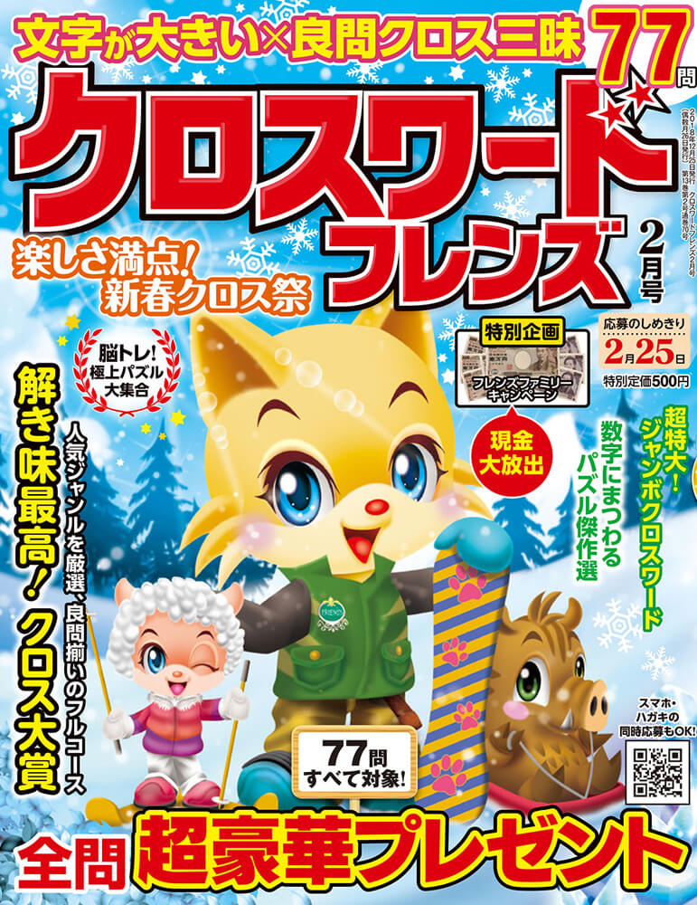 「クロスワード」といえばパズルの定番ですが、その出題形式は実に多種多様です。イラストがヒントの「イラストクロス」、カギがすべて五・七・五で書かれた「川柳クロス」、黒マスを自分で書き込む超難問「ホワイトクロス」などなど…。非常に奥深いクロスワードの魅力をぜひ本誌で味わってください!