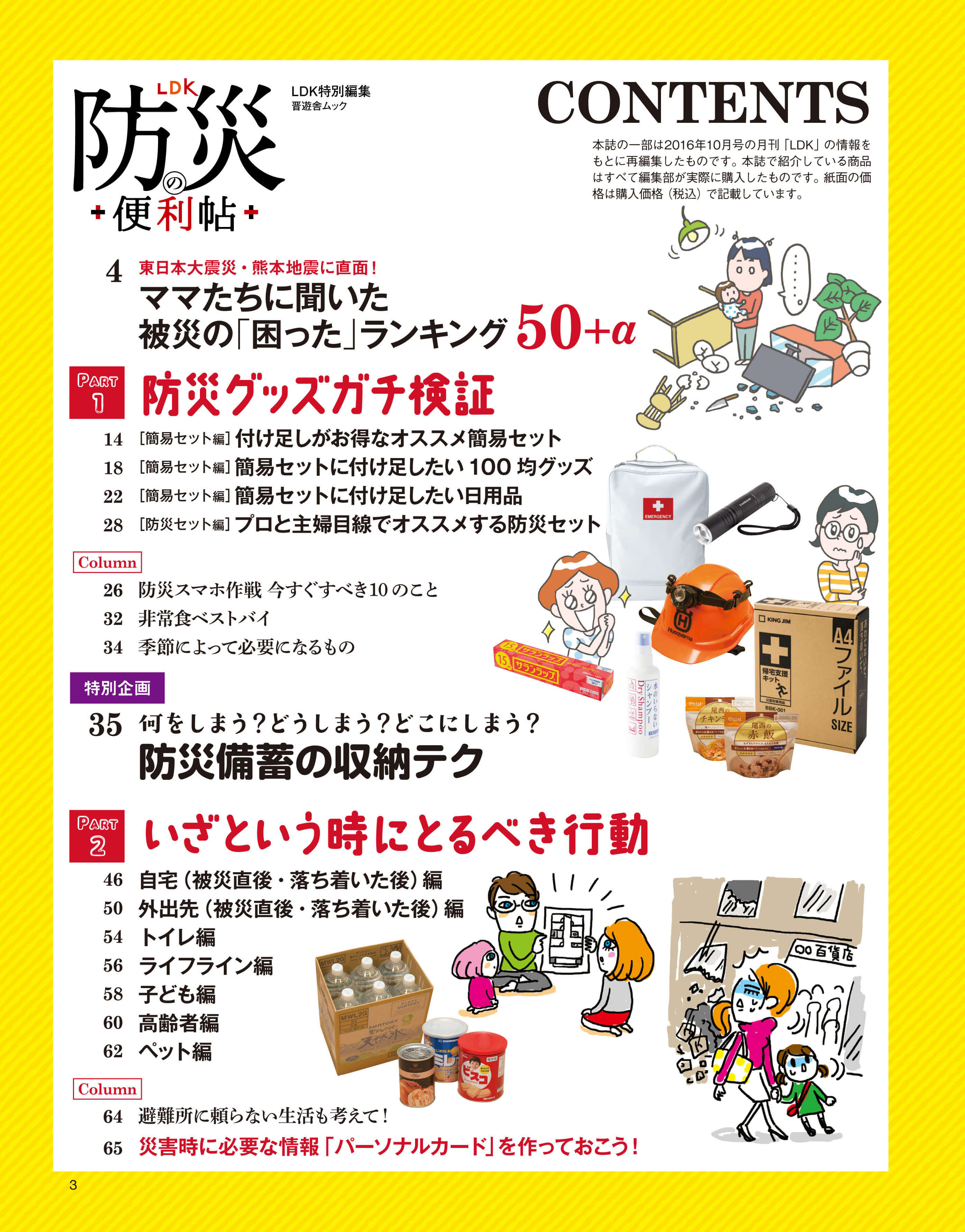 いつ何時起こるか分からない、地震や津波。「家族の安否がとにかく気になった」「小さな子どもと避難所で過ごすのは困難だった」など、実際に被災したママの声をもとに、備えるべき「モノ」&「コト」を全部この本に詰め込みました。